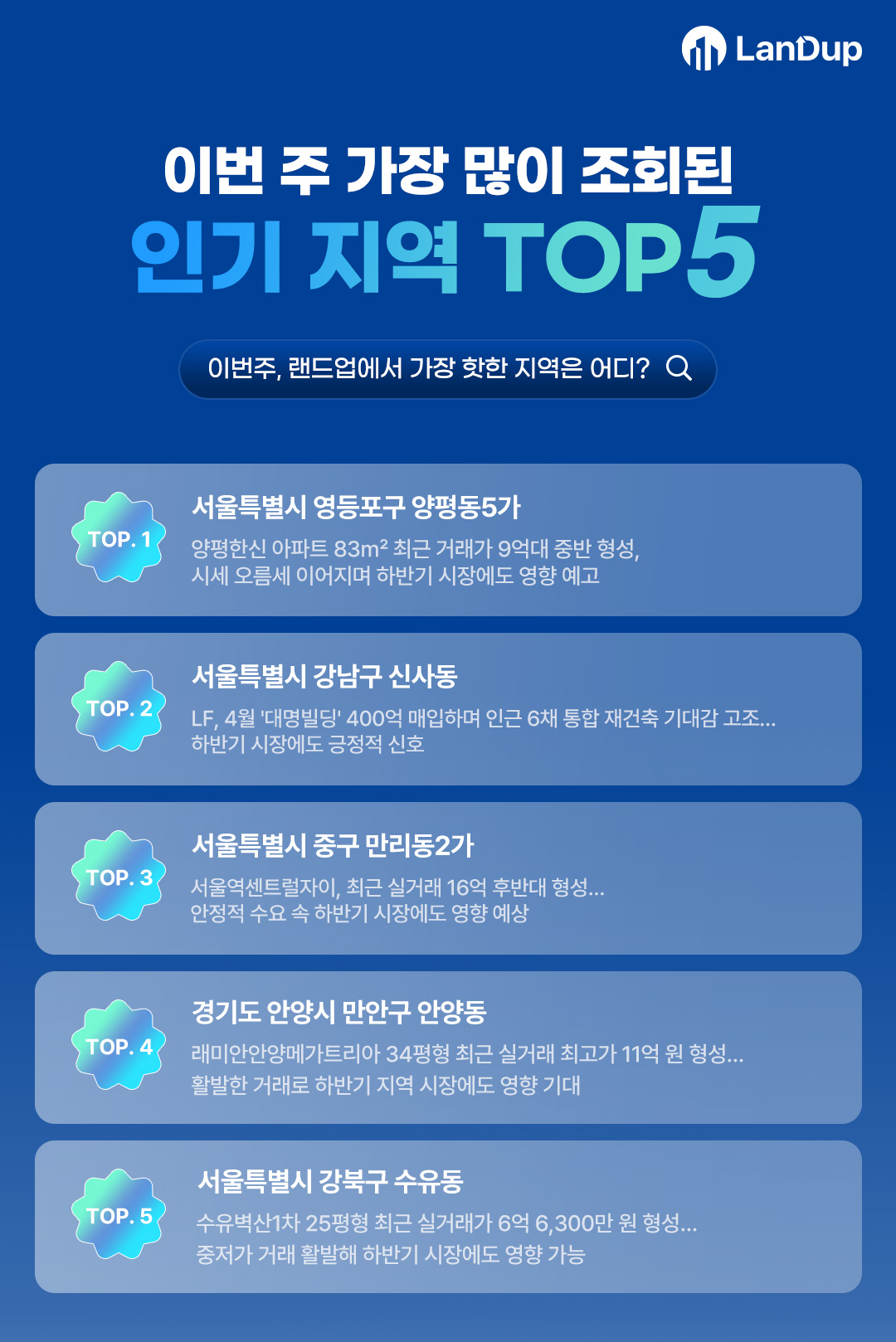 - 핵심 내용: 7월 전국 민간아파트 분양 물량이 1만4109채로 올해 최대치를 기록했으나, 서울은 82채에 불과했습니다. 서울의 최근 1년 평균 1순위 경쟁률은 88.96대 1로 전국 평균의 약 8.8배에 달했습니다. - 변화 요인: 전월 대비 전국 공급이 31% 증가했으며, 부산(3698채)과 경기(3696채)가 전체의 절반 이상을 차지했습니다. 6·27 대출 규제 영향으로 분양가가 낮은 지역과 공공택지 공급이 늘고 있습니다. - 중요성: 서울의 공급 절대 부족 현상은 높은 청약 경쟁률과 집값 상승 압력으로 이어질 가능성이 커, 주택 수급 불균형 문제를 심화시킬 수 있습니다. - 미래 전망: 전국 공급은 늘겠지만, 서울·수도권 핵심지의 공급난은 지속될 전망이며, 규제 지역 수요가 비규제·저가 지역으로 분산되는 현상이 강화될 것으로 보입니다.